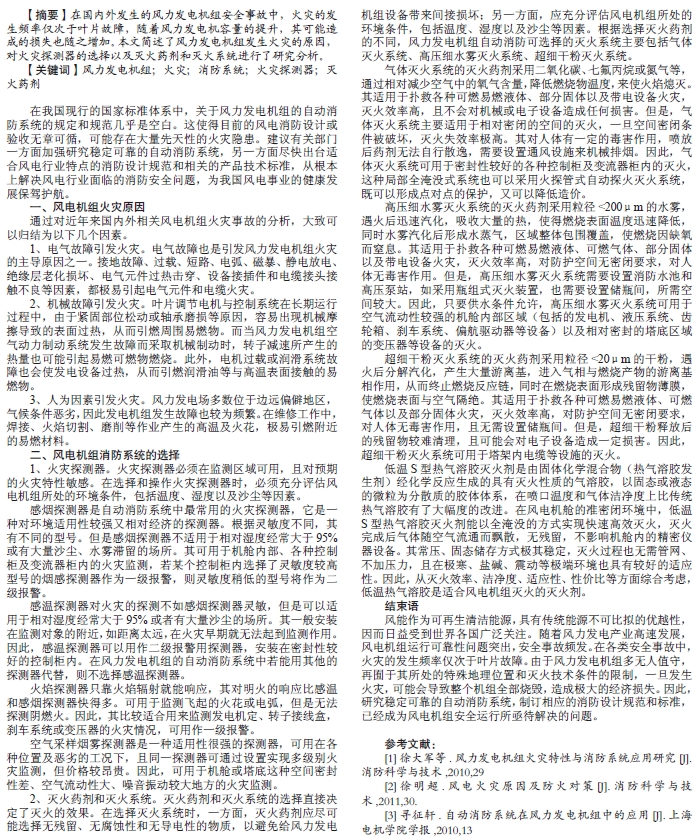 淺析風力發(fā)電機組火災原因及消防系統(tǒng)的選擇