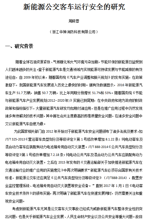 新能源公交客車運(yùn)行安全的研究
