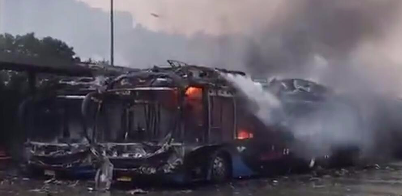 以上視頻為珠海公交場(chǎng)站“自燃”的電動(dòng)大巴現(xiàn)場(chǎng)狀態(tài)。
