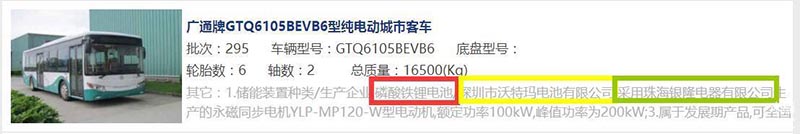 董明珠掌控珠海銀隆旗下的廣通系電動(dòng)大巴,多以深圳沃特瑪電池有限公司制造的磷酸鐵鋰電池作為動(dòng)力源。
