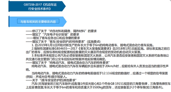 2017年12月28日,由客車標(biāo)委會(huì)組織的JT/T 325-201X《營(yíng)運(yùn)客車類型劃分及等級(jí)評(píng)定》標(biāo)準(zhǔn)審定會(huì)在北京召開。本次標(biāo)準(zhǔn)修訂要充分結(jié)合JT/T 1094—2016、GB 7258—2017、GB 13094—2017等標(biāo)準(zhǔn)相關(guān)要求,廣泛征求行業(yè)內(nèi)相關(guān)單位意見,將“以人為本,服務(wù)社會(huì)”作為目標(biāo),提高了營(yíng)運(yùn)客車安全性能。