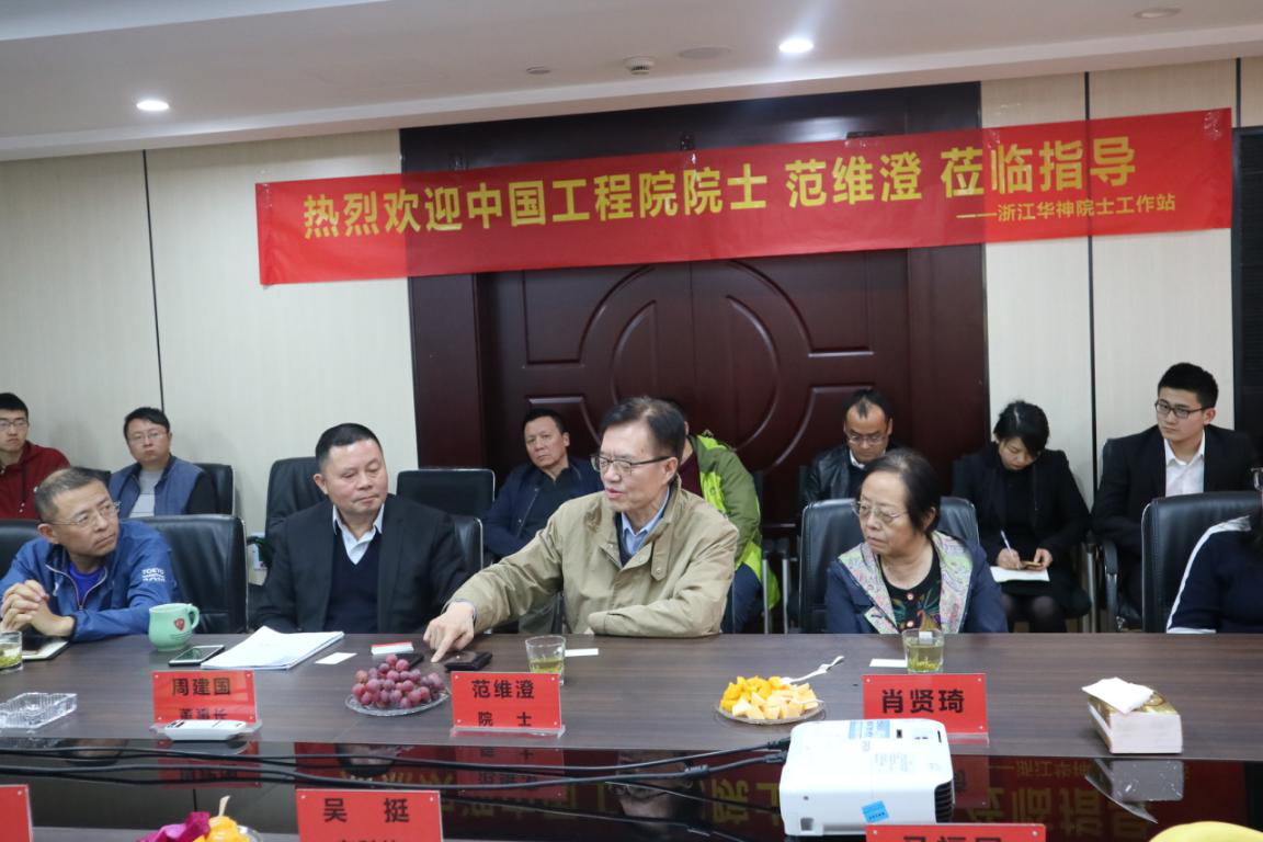 2019年4月1日,中國工程院院士、清華大學(xué)公共安全研究院院長范維澄院士蒞臨華神消防院士工作站開展指導(dǎo)工作,董事長周建國代表公司熱情接待。浙江省科學(xué)技術(shù)協(xié)會服務(wù)中心程文偉部長、杭州市科學(xué)技術(shù)協(xié)會吳挺等相關(guān)領(lǐng)導(dǎo)等陪同并出席座談會。