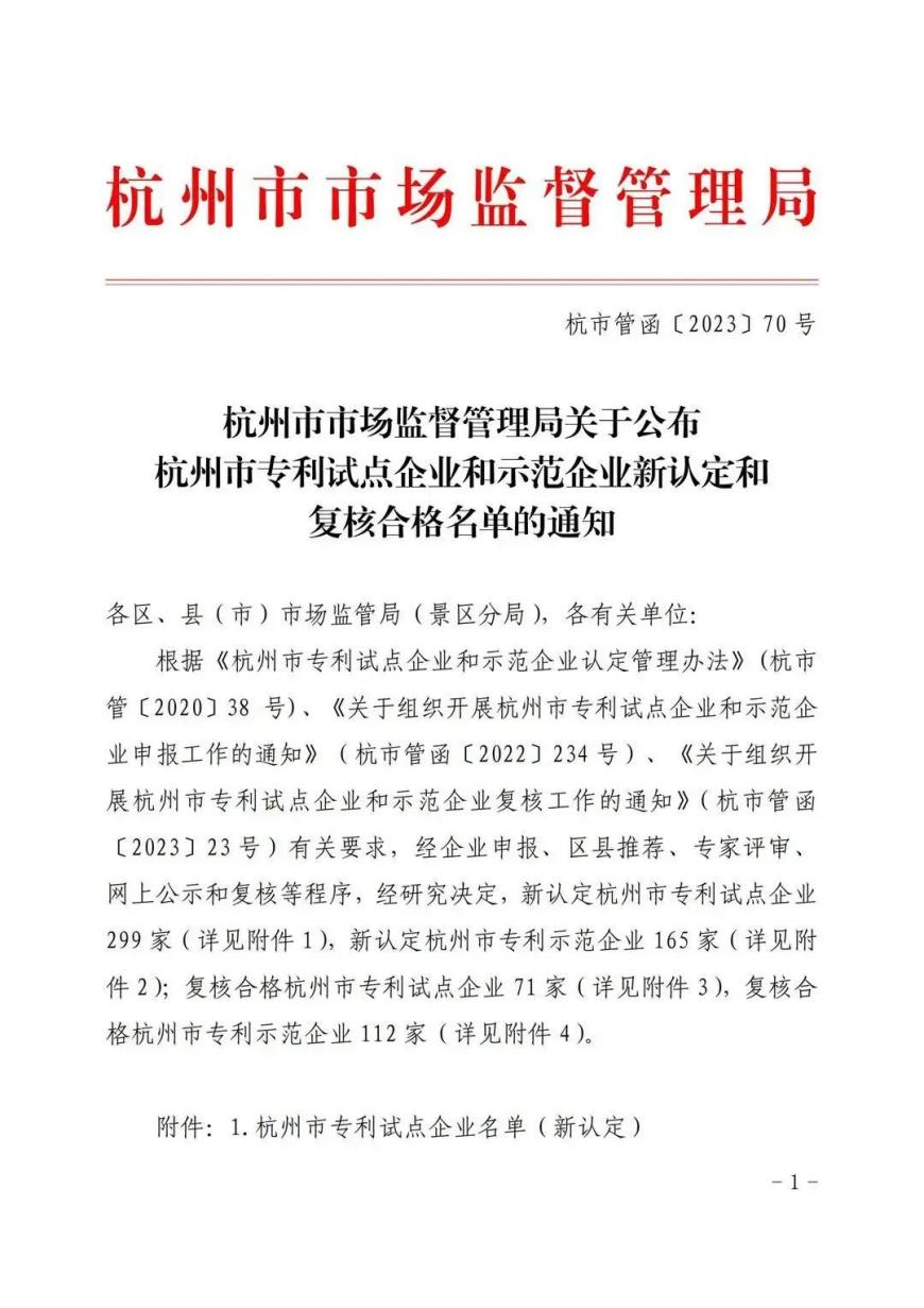 “杭州市專利示范企業(yè)”是為推進全市企業(yè)專利制度建設、提高企業(yè)自主知識產(chǎn)權的數(shù)量和質(zhì)量、提升企業(yè)知識產(chǎn)權綜合能力而樹立的標桿。要求申報企業(yè)有明確專利管理部門和專職人員,建立有效的專利申請、管理、保護、運用以及專利信息利用機制,專利工作貫穿于企業(yè)的技術開發(fā)、生產(chǎn)、經(jīng)營和管理等各個環(huán)節(jié),且在近兩年內(nèi)無侵犯專利行為。